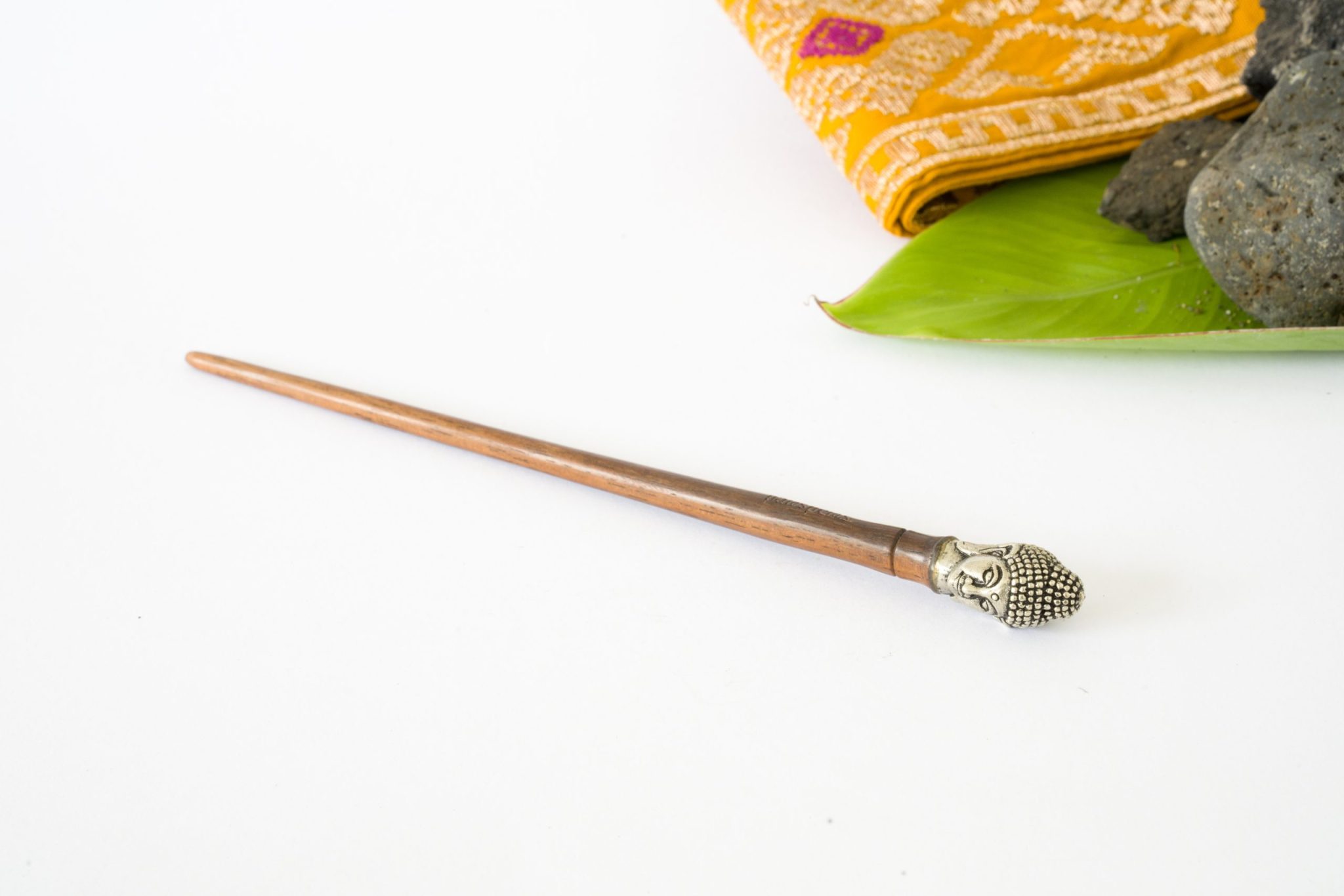 The beautiful bust of Buddha that decorates this design is made of white metal on sono wood.