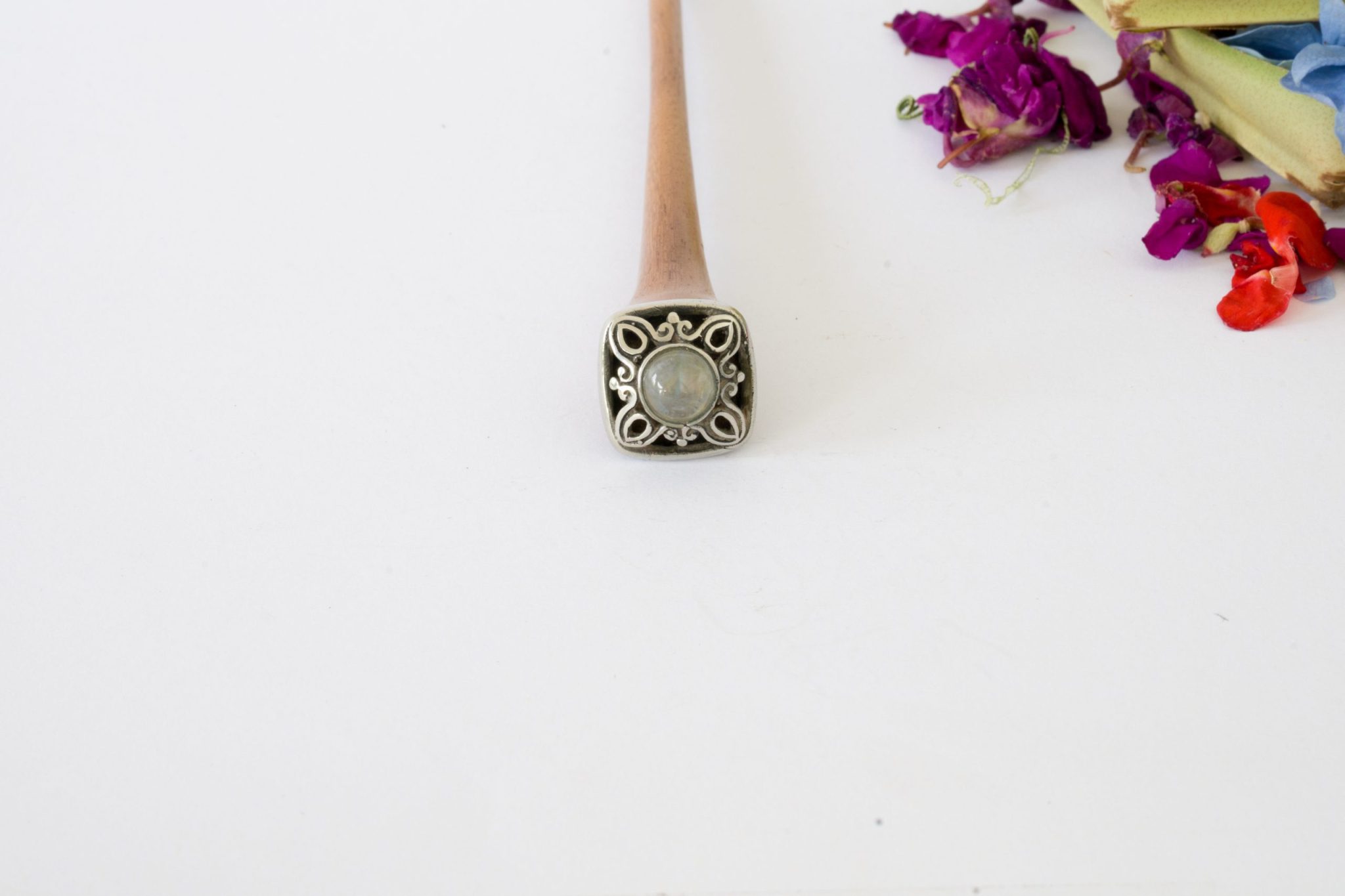 El Palito de madera Cairo es una pieza que evoca el misterio, la elegancia y la riqueza cultural de la antigua ciudad de Cairo. Con su nombre inspirado en esta ciudad milenaria, famosa por su historia vibrante y sus enigmáticos secretos, este diseño combina la alpaca, la piedra luna y el ónyx para crear una joya llena de simbolismo, elegancia y fortaleza.