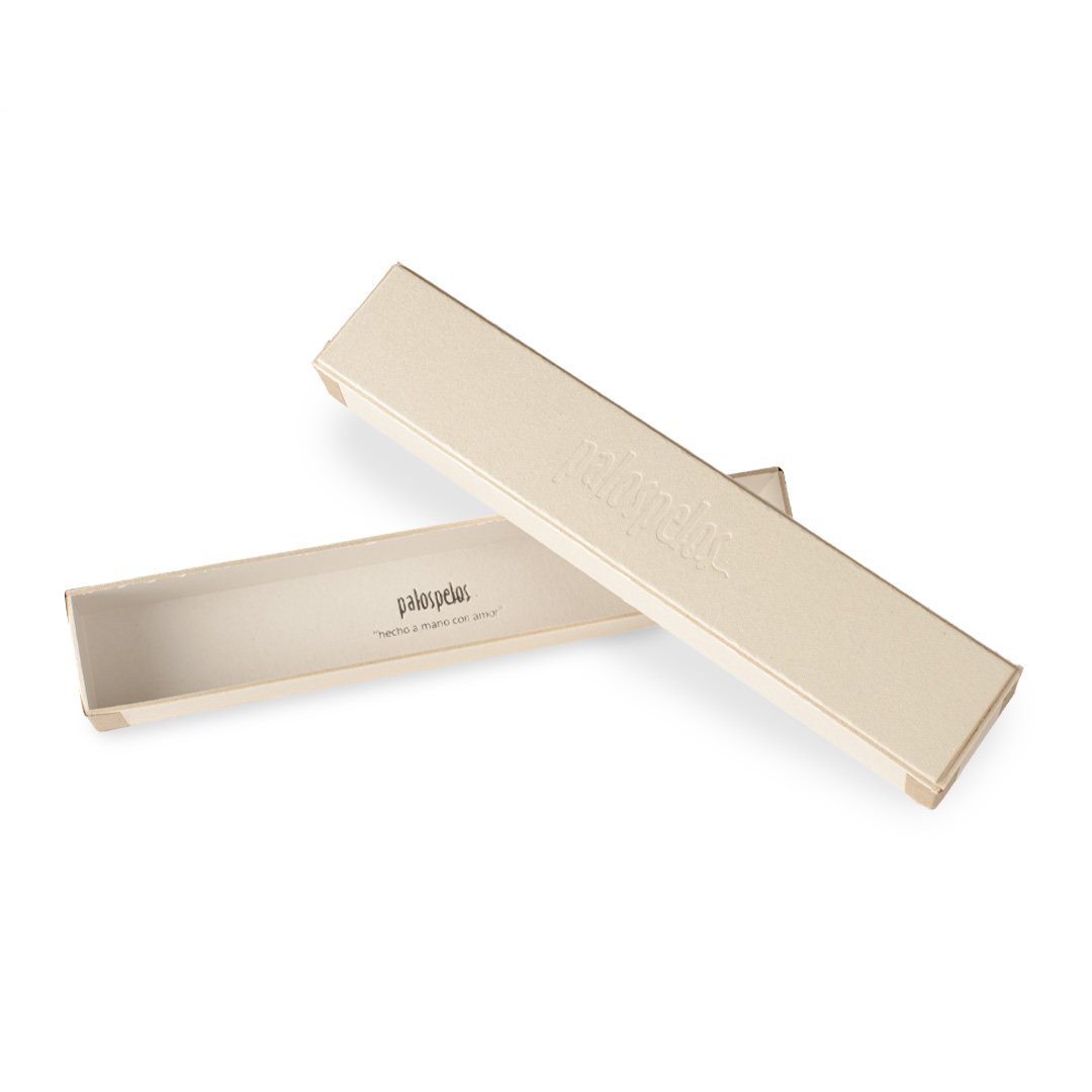 El cartón procede de materiales 100% reciclados, reduciendo el impacto ambiental y dando una segunda vida a los recursos. Es una opción coherente con la filosofía de Palospelos: piezas hechas a mano con respeto por los materiales y por el entorno.