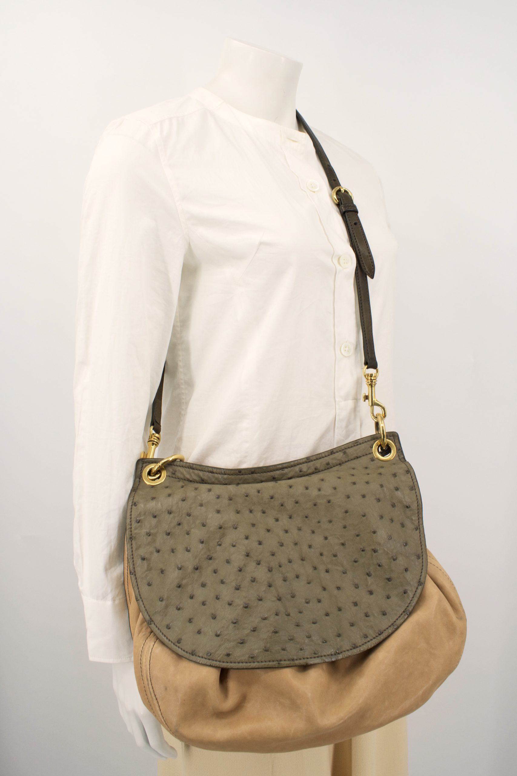 Bandolera de piel y avestruz