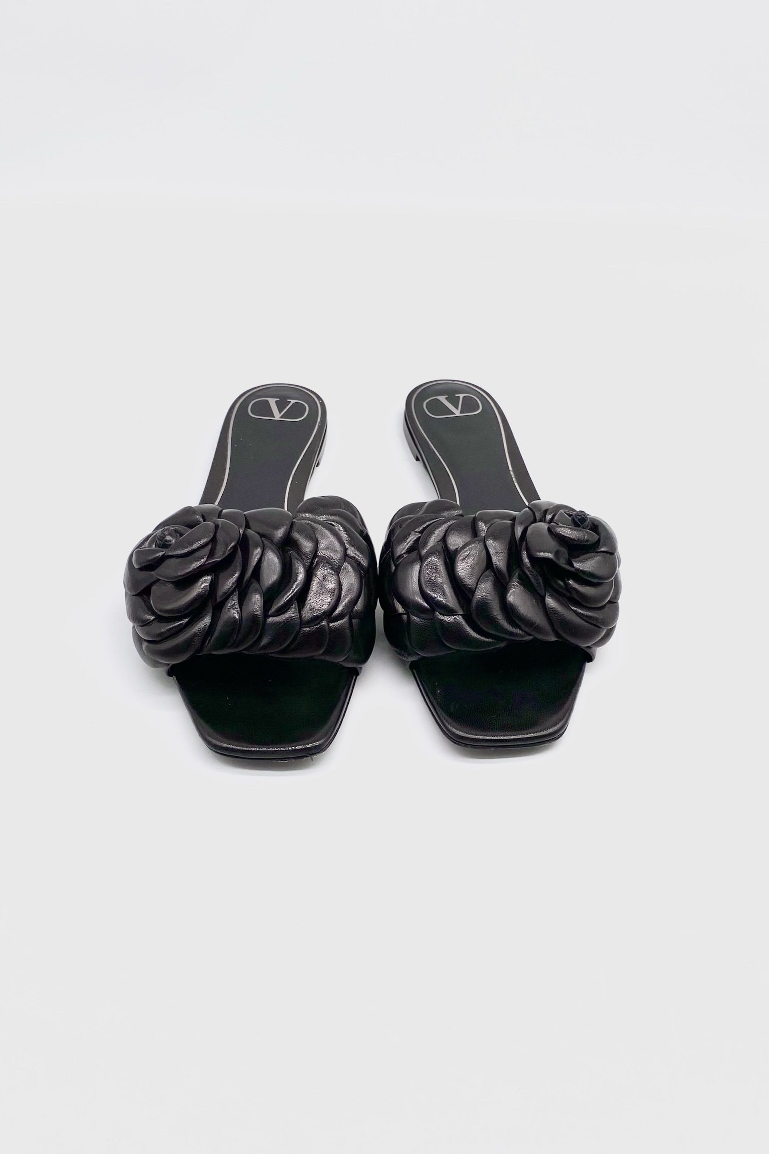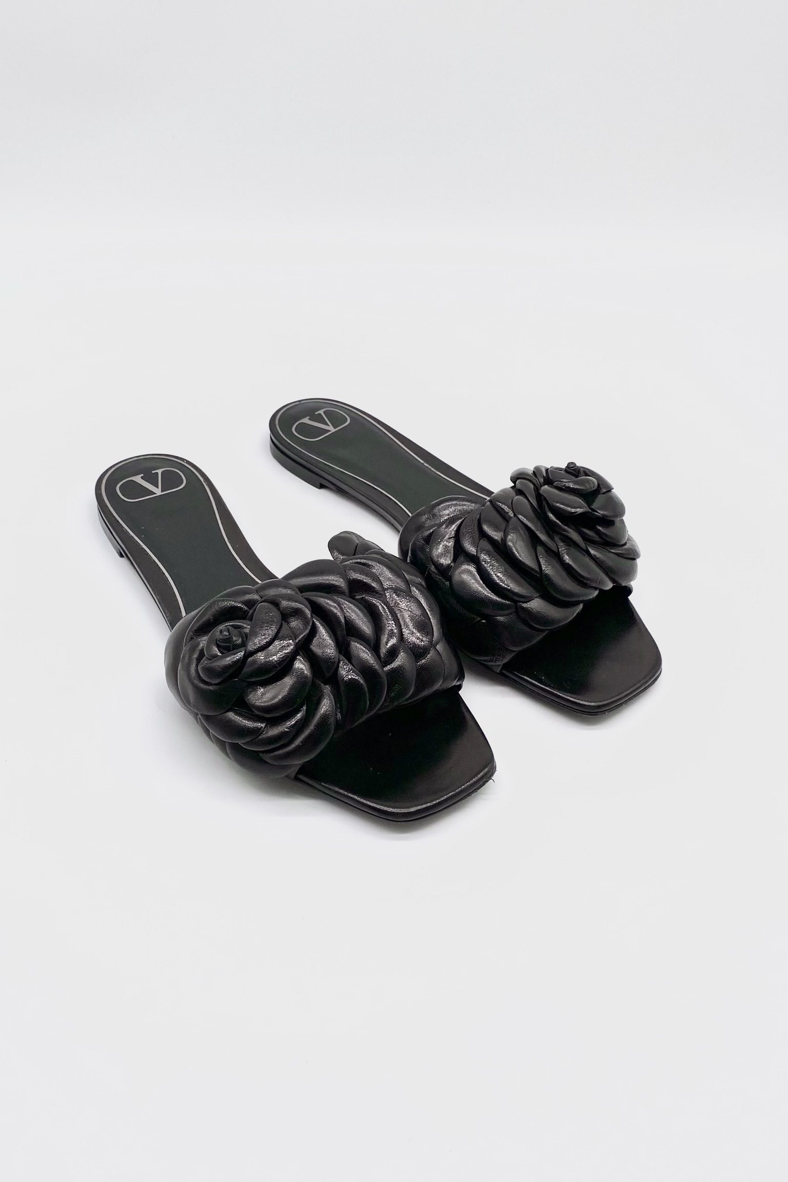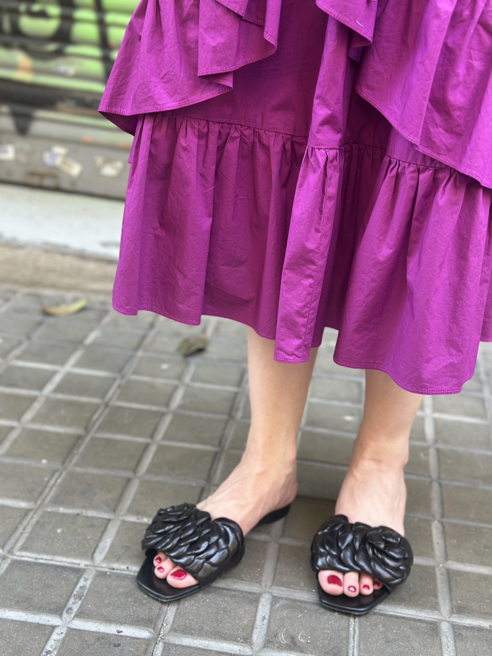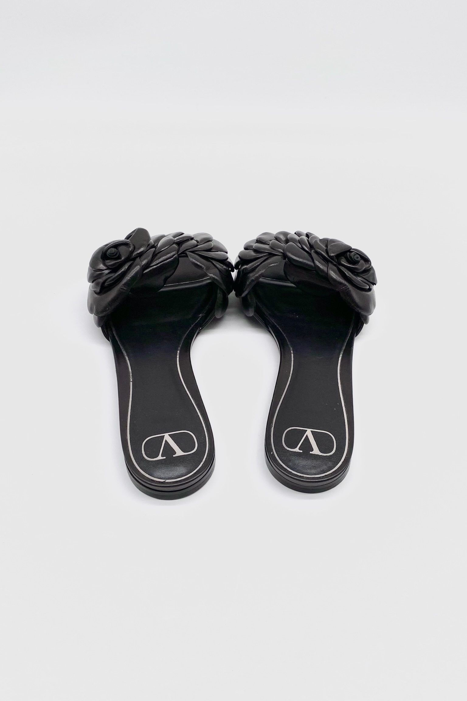 Mules negras con camelias